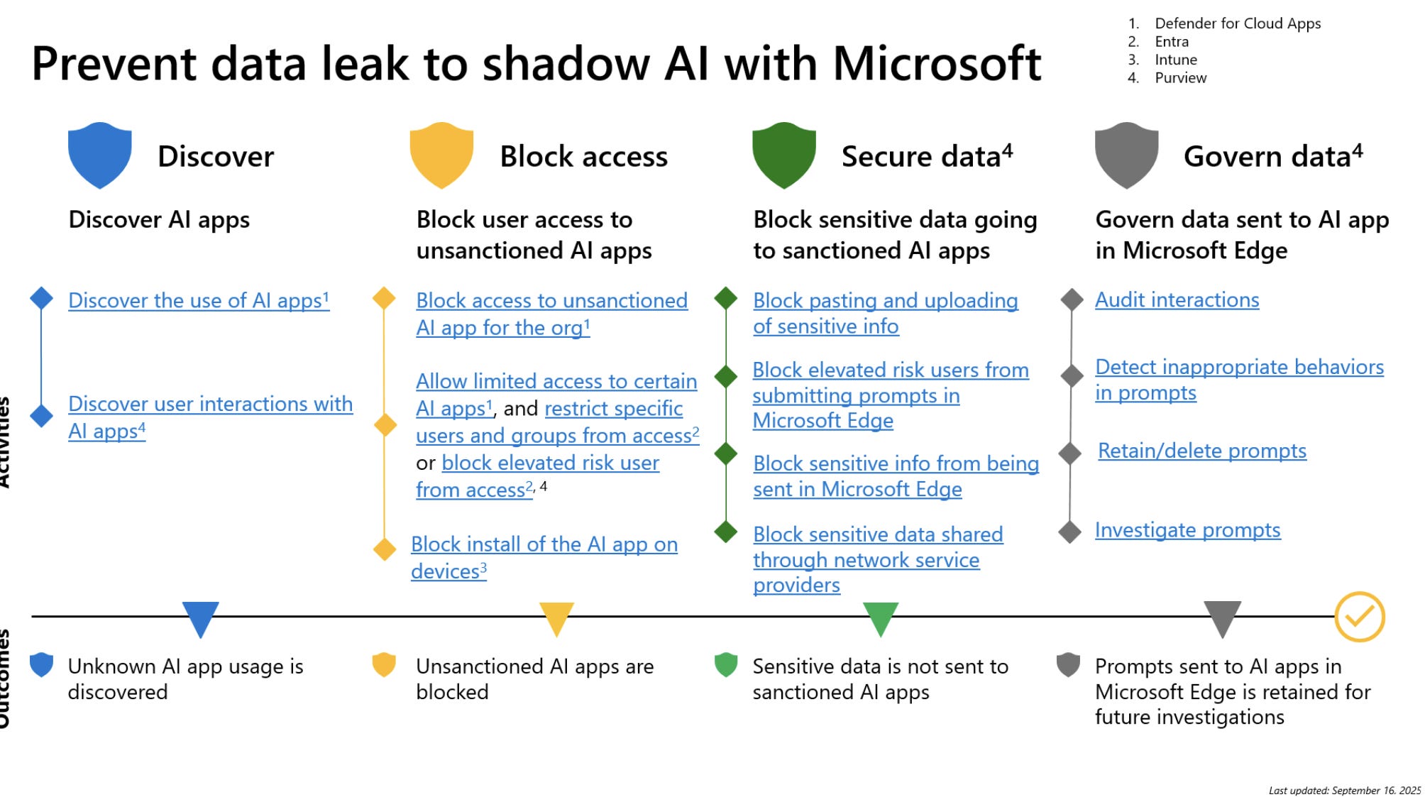 In our latest deployment blueprint, we outline how organisations can prevent data leaks to Shadow AI by using Microsoft security solutions including Defender for Cloud Apps, Entra, Intune, and Purview.